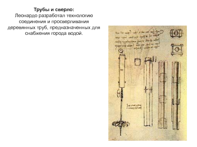 Леонардо разработал технологию соединения и просверливания деревянных труб,