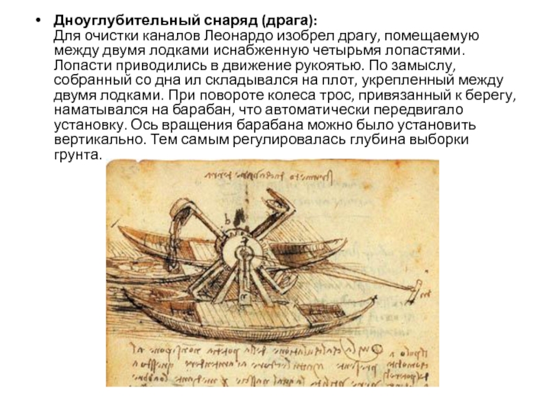 Для очистки каналов Леонардо изобрел драгу, помещаемую между