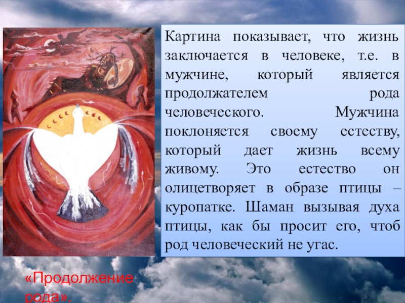 Слайд 11Картина показывает, что жизнь заключается в человеке, т.е. в мужчине,