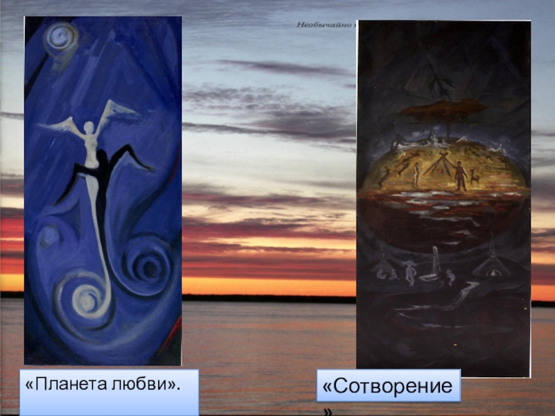 Мифологические – картины на тему верования, мифических персонажей, шаманам, со сказочными и фантастическими мотивами.