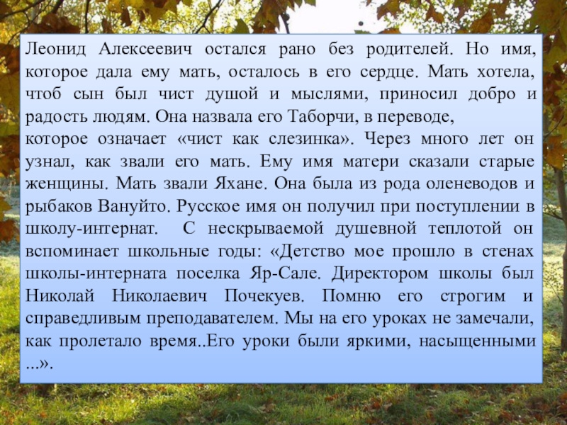 Слайд 3Леонид Алексеевич остался рано без родителей. Но имя, которое дала
