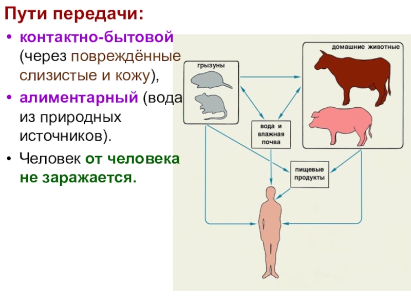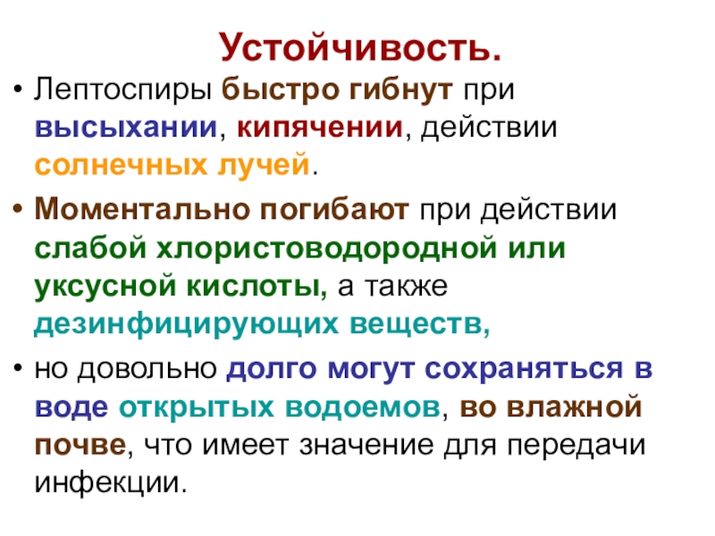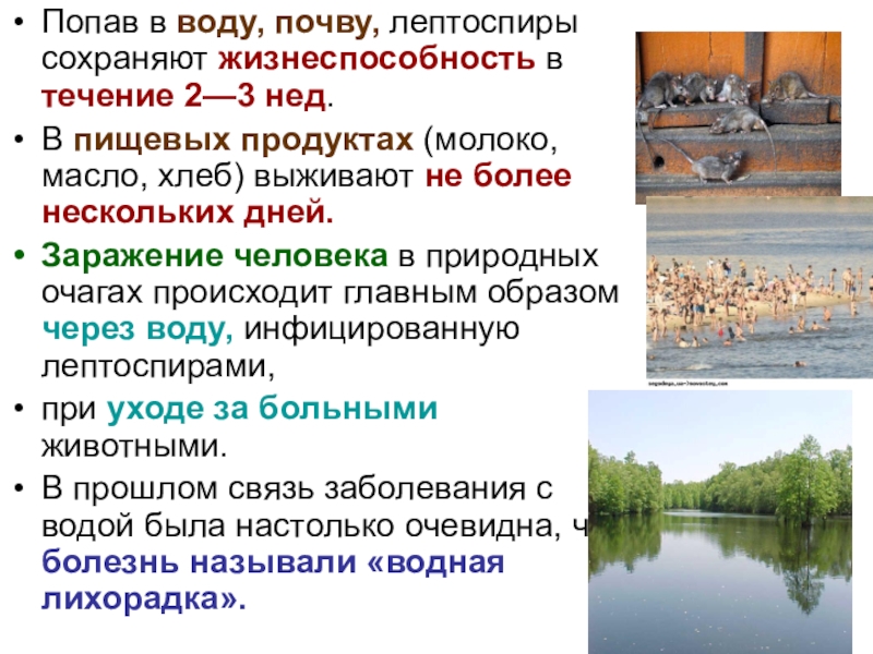 Слайд 12Попав в воду, почву, лептоспиры сохраняют жизнеспособность в течение 2—3