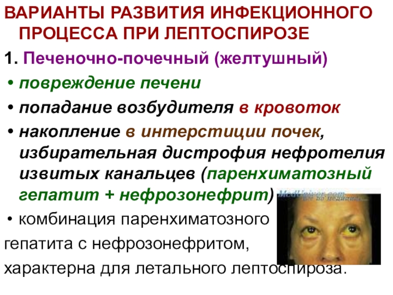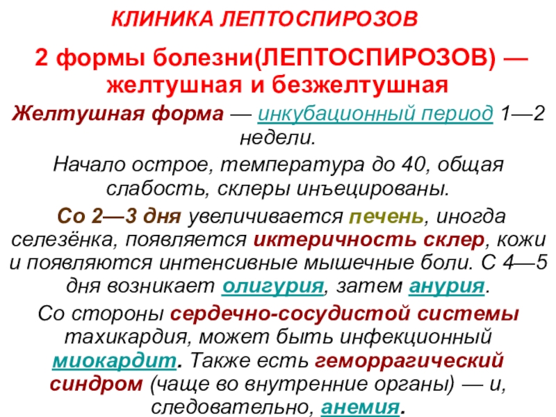 2 формы болезни(ЛЕПТОСПИРОЗОВ) — желтушная и безжелтушная