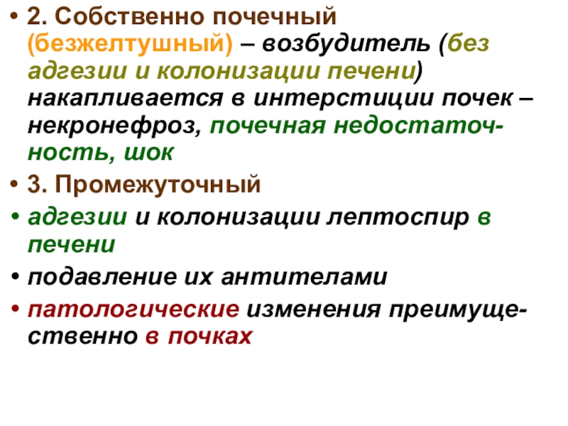 Слайд 182. Собственно почечный (безжелтушный) – возбудитель (без адгезии и колонизации