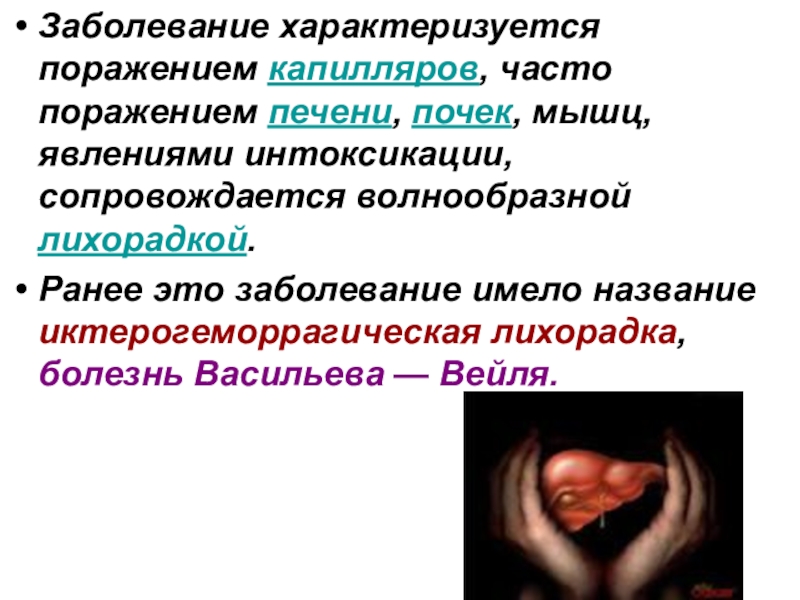 Слайд 19Один из основных синдромов лептоспироза – поражение печени с увеличением