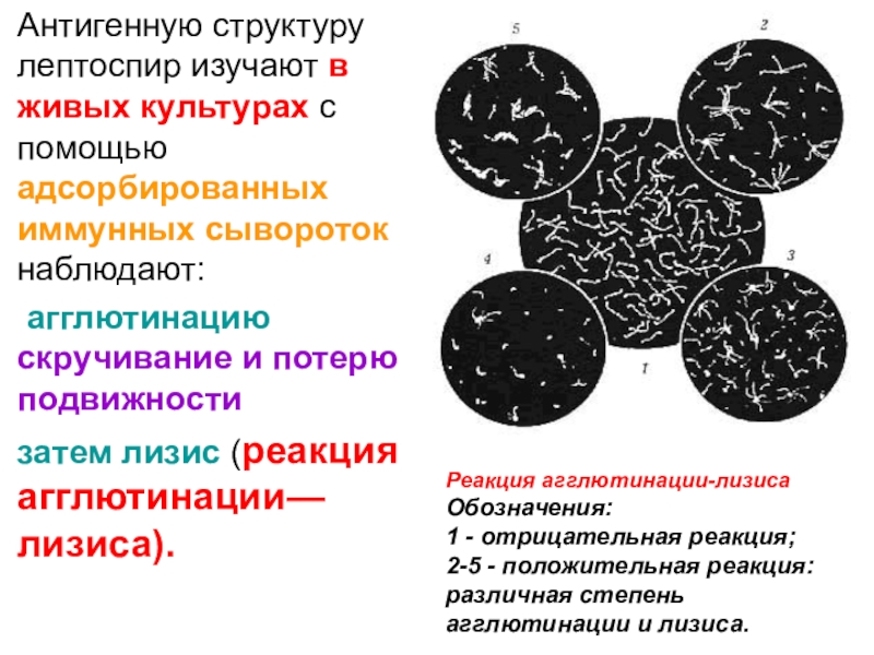 Слайд 10Антигенную структуру лептоспир изучают в живых культурах с помощью адсорбированных