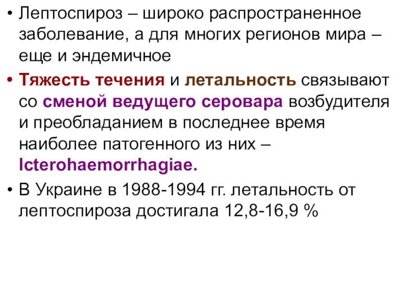 Слайд 4Лептоспироз – широко распространенное заболевание, а для многих регионов мира
