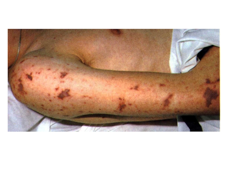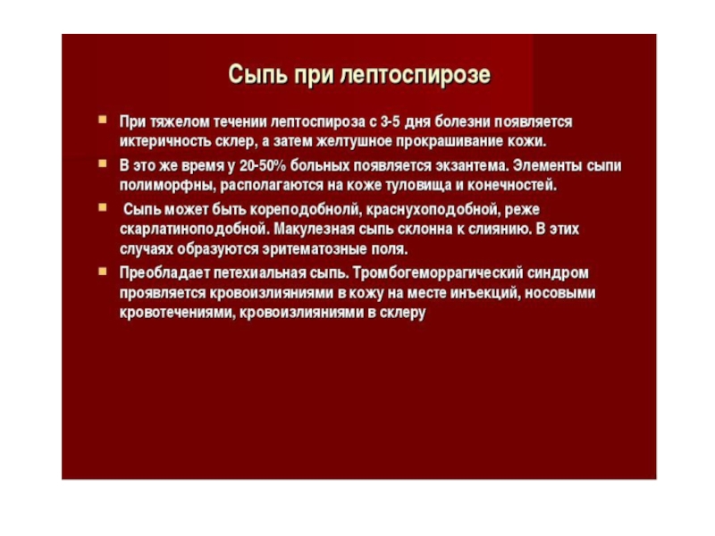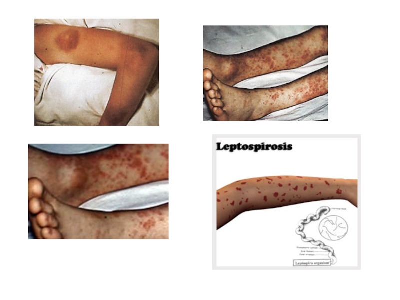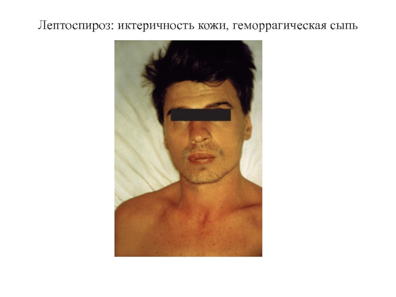 Слайд 29Лептоспироз: иктеричность кожи, геморрагическая сыпь