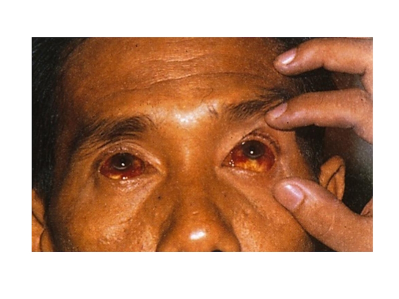 Слайд 19Характерен внешний вид больных - лицо одутловато, гиперемировано, сосуды склер,