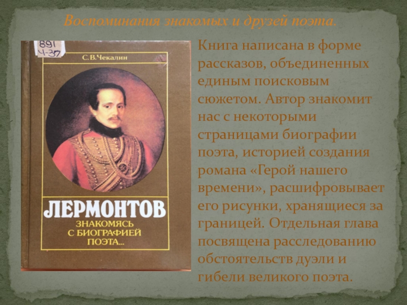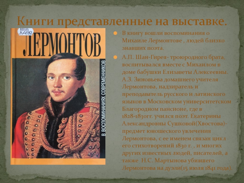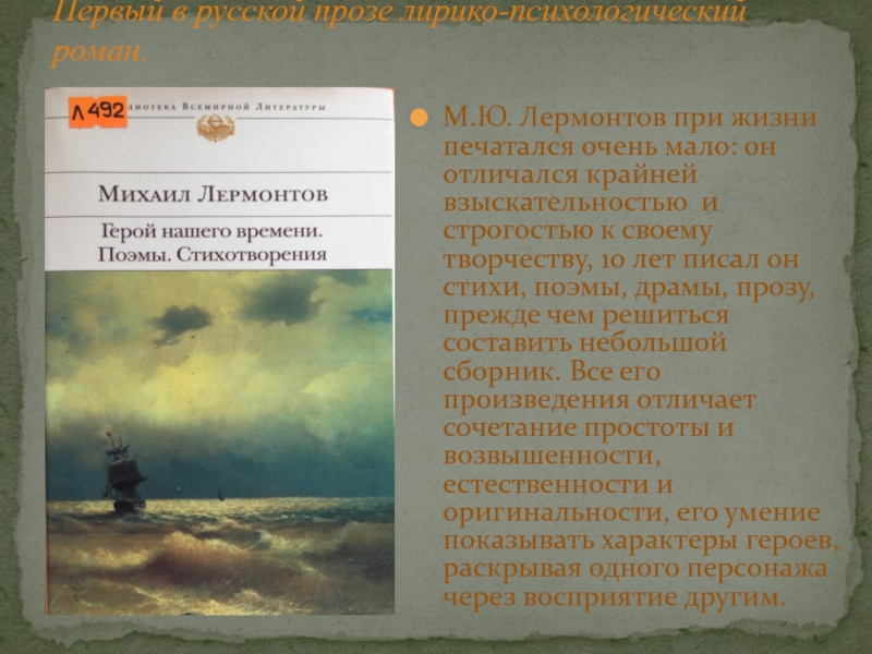 классиков, прекрасно рисовал.В 15 лет написал первую редакцию поэмы «Демон»,