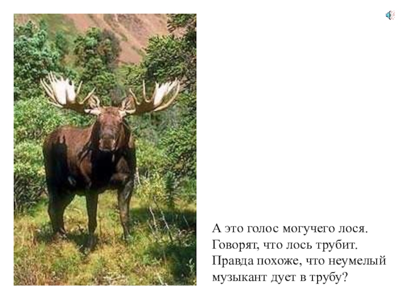 А это голос могучего лося. Говорят, что лось трубит.Правда похоже, что неумелый музыкант дует в трубу?