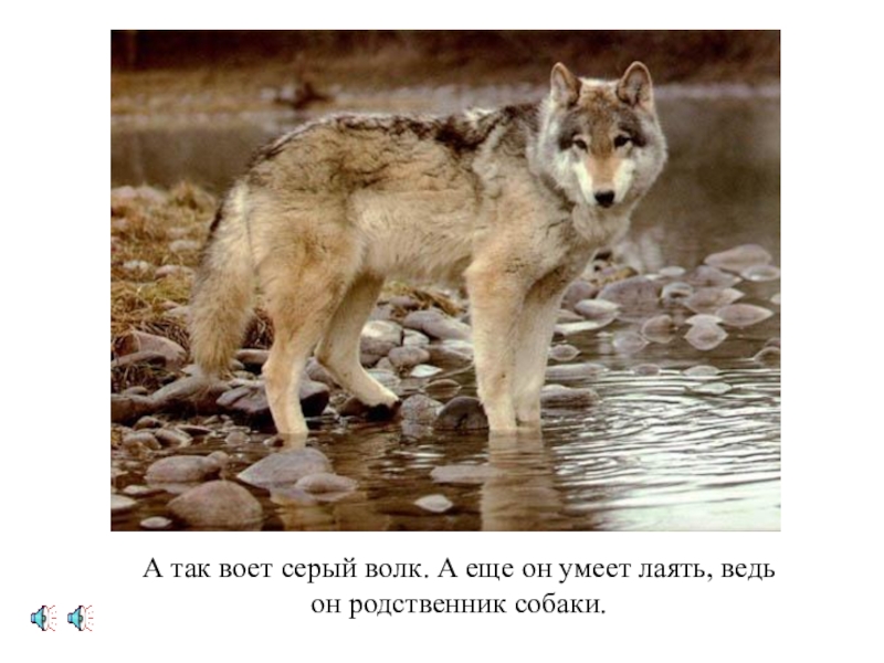 Слайд 12А так воет серый волк. А еще он умеет лаять,