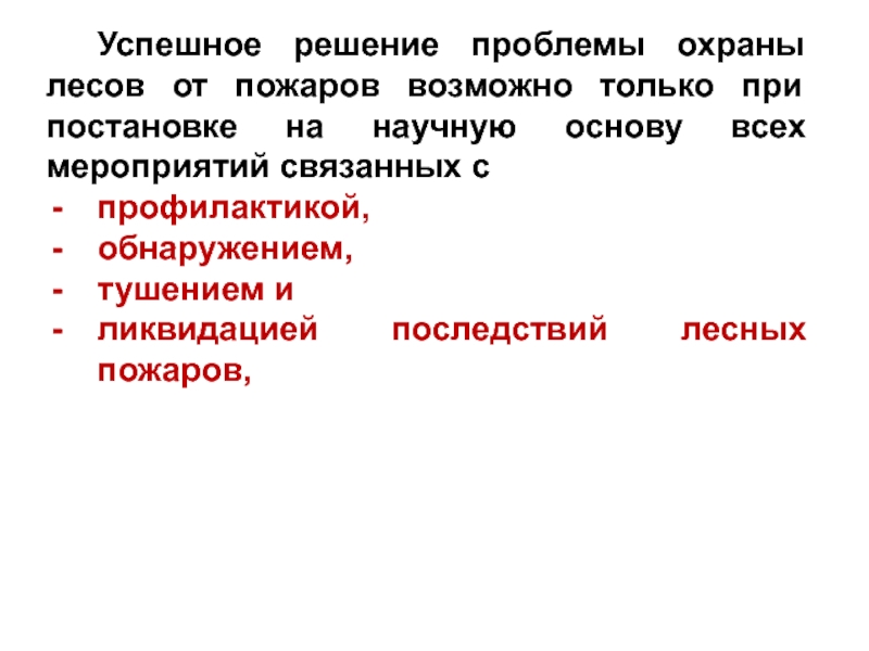 Слайд 12Успешное решение проблемы охраны лесов от пожаров возможно только при
