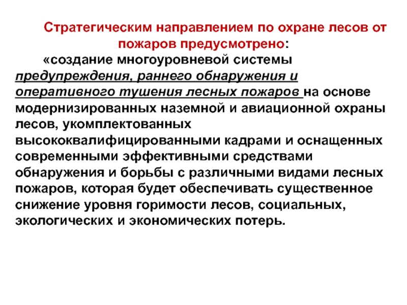-локализации и ликвидации лесных пожаров, -снижение всех видов прямого и косвенного ущерба.