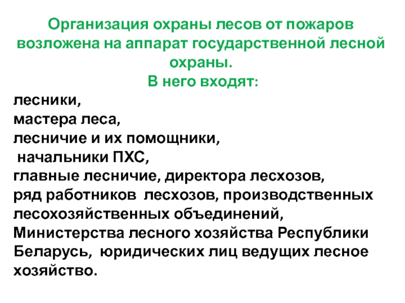 Слайд 34Организация охраны лесов от пожаров возложена на аппарат государственной лесной