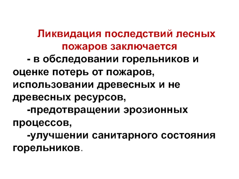 Слайд 44Ликвидация последствий лесных пожаров заключается