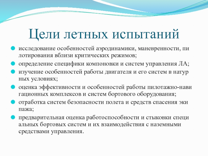 Слайд 4Цели летных испытаний