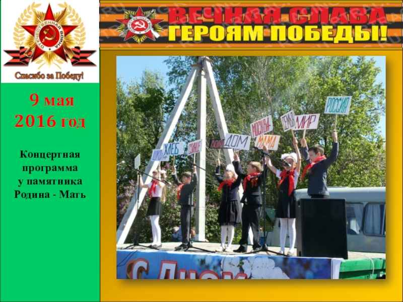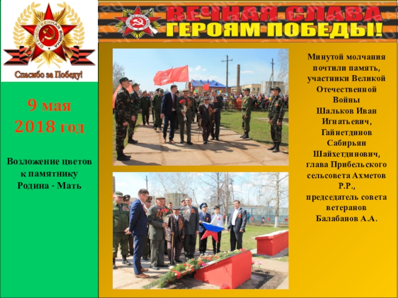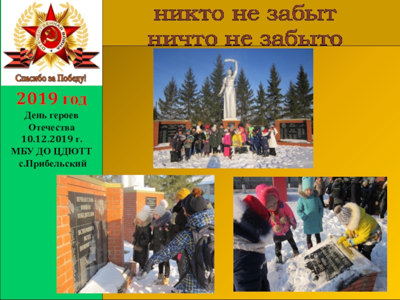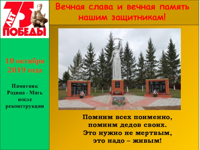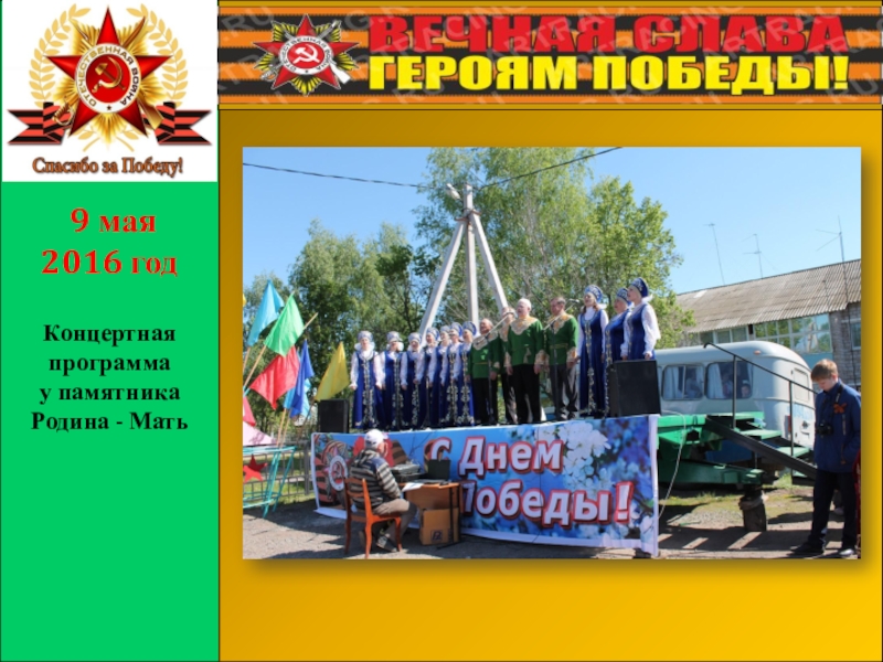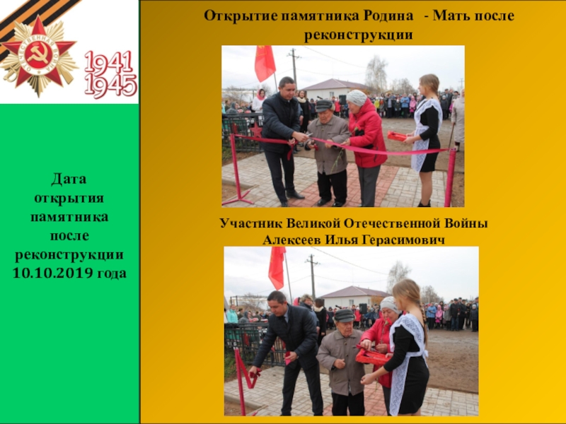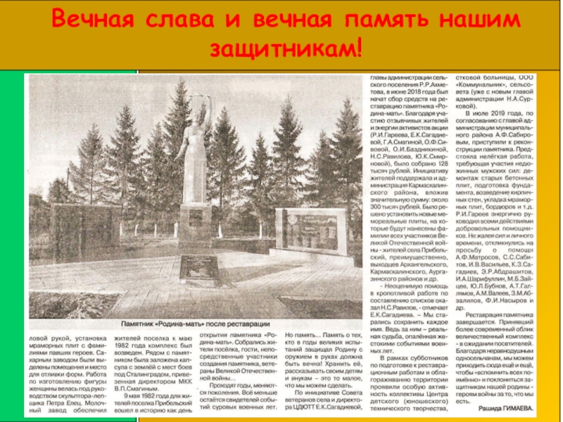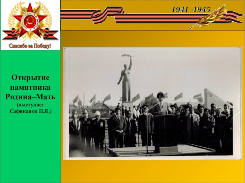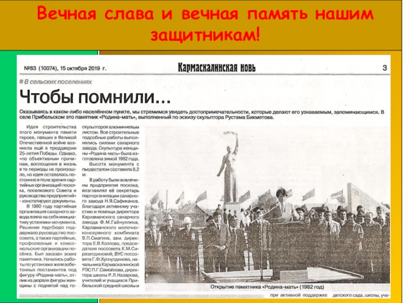 Слайд 1Открытие памятника Родина – Мать с.Прибельский