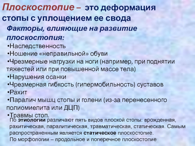 Слайд 12Плоскостопие – это деформация стопы с уплощением ее свода