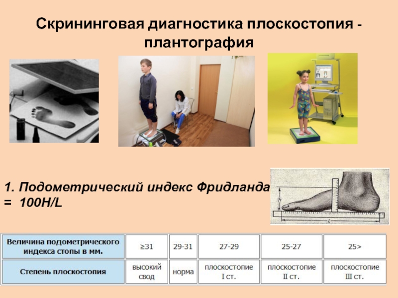 Слайд 18Скрининговая диагностика плоскостопия - плантография