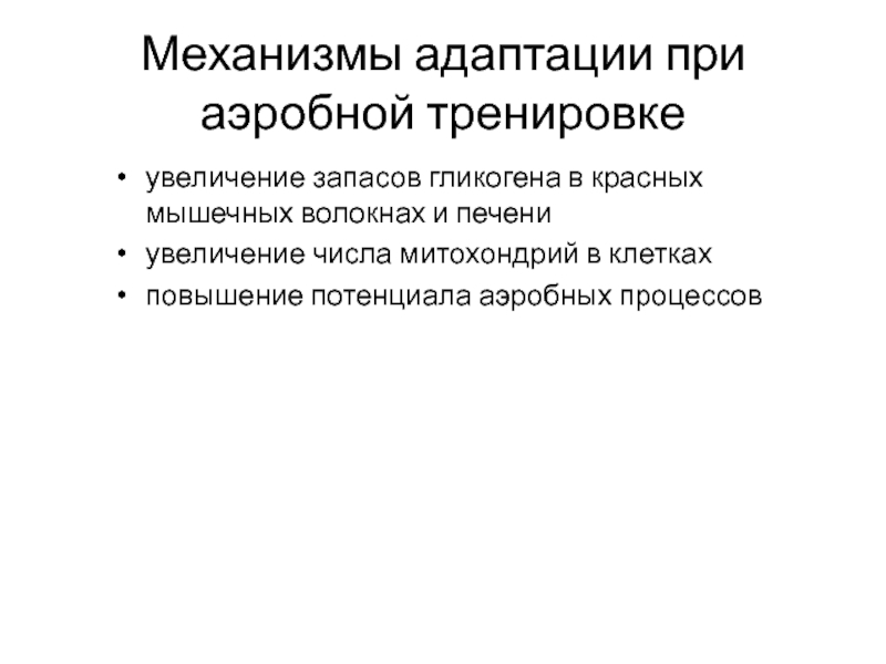 Слайд 4Механизмы адаптации при аэробной тренировке