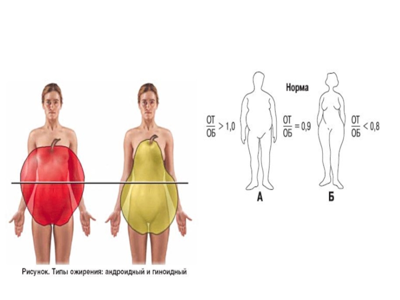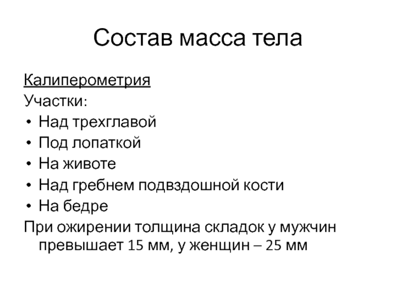 ожирении толщина складок у мужчин превышает 15 мм, у женщин