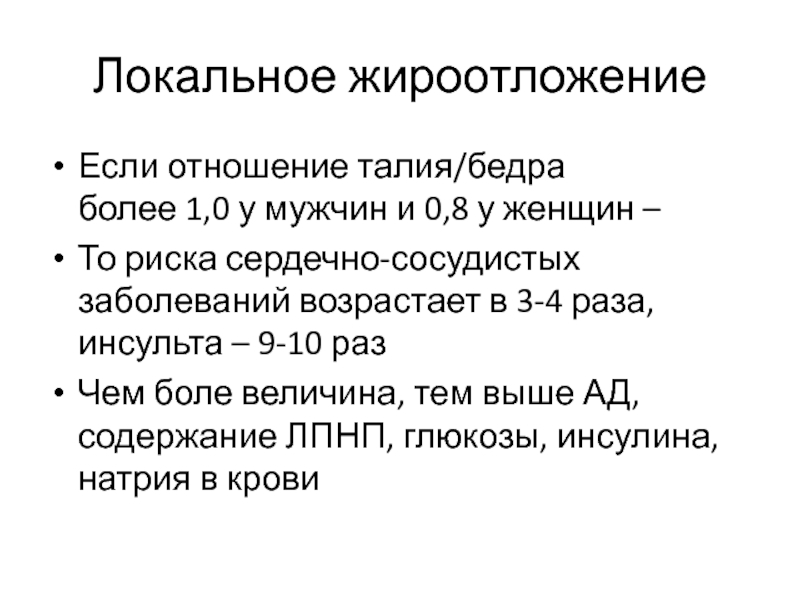Чем боле величина, тем выше АД, содержание ЛПНП, глюкозы, инсулина, натрия в крови