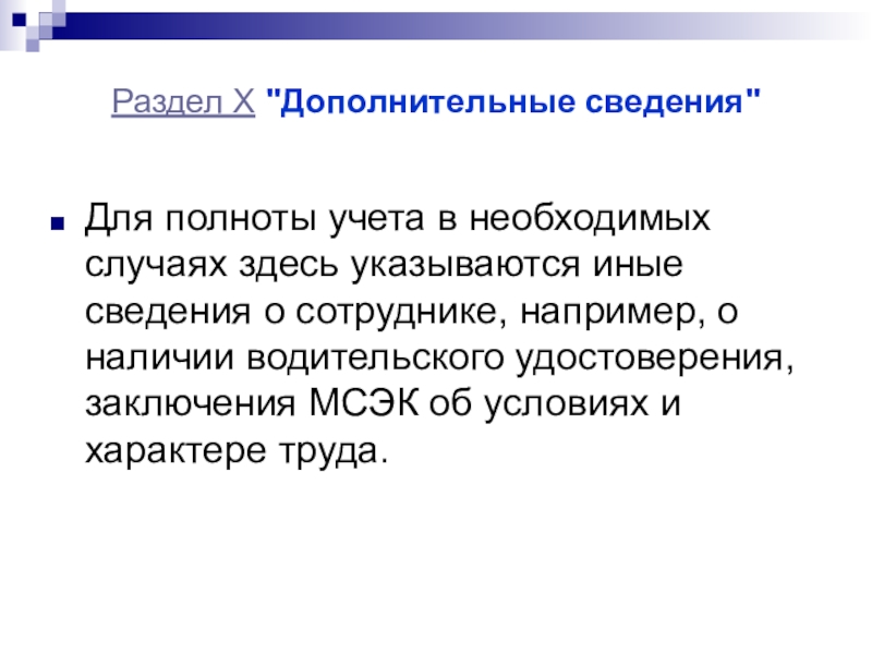 Слайд 10В пункте 8 содержатся данные о стаже - общем, непрерывном и