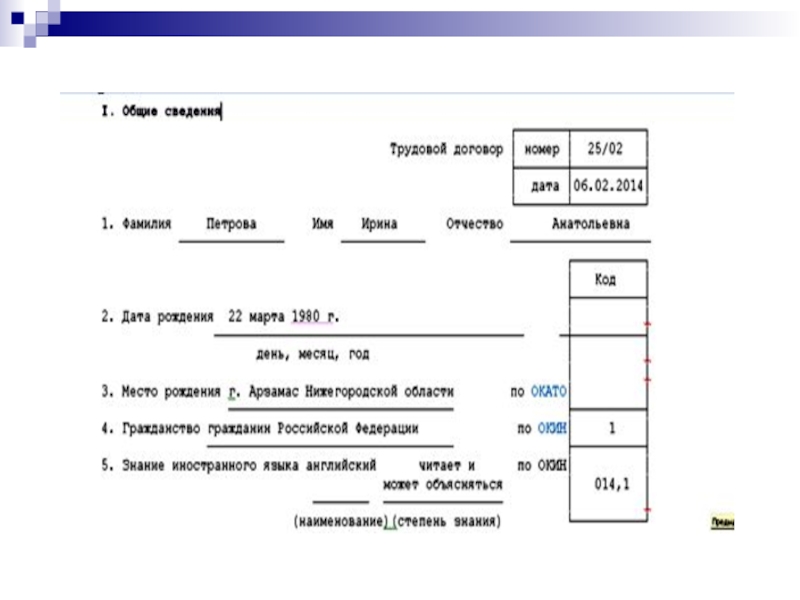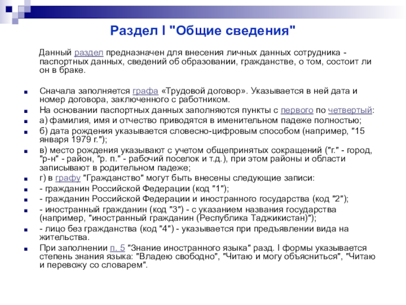 Остальные сведения для заполнения карточки при оформлении трудоустройства работник сообщает самостоятельно.