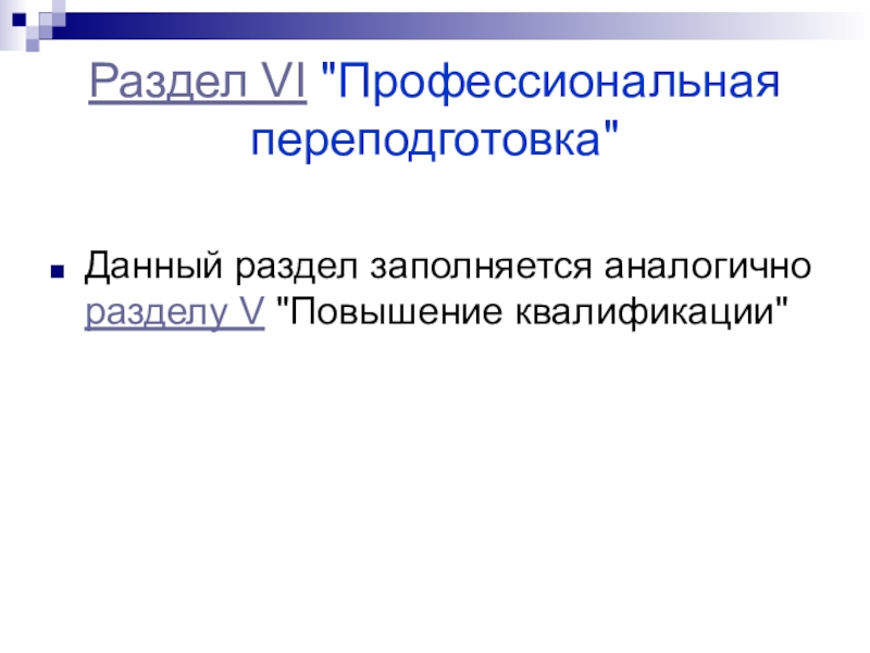 Слайд 17Раздел VI "Профессиональная переподготовка"