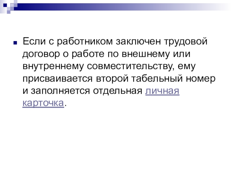 или внутреннему совместительству, ему присваивается второй табельный номер и заполняется