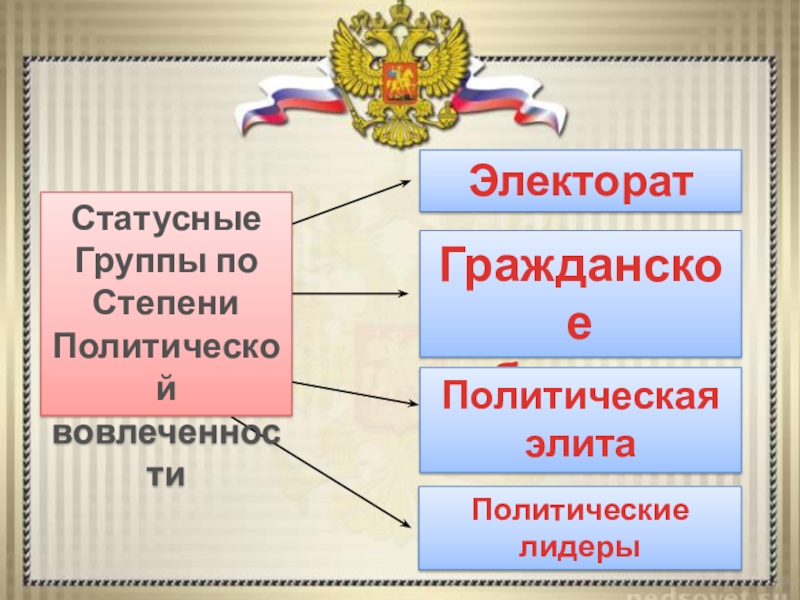 СтатусныеГруппы поСтепениПолитическойвовлеченностиЭлекторатГражданскоеобществоПолитическаяэлитаПолитическиелидеры