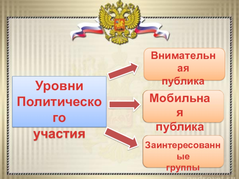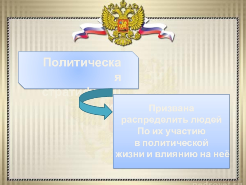 Политическая стратификацияПризвана распределить людейПо их участию в политической жизни и влиянию на неё