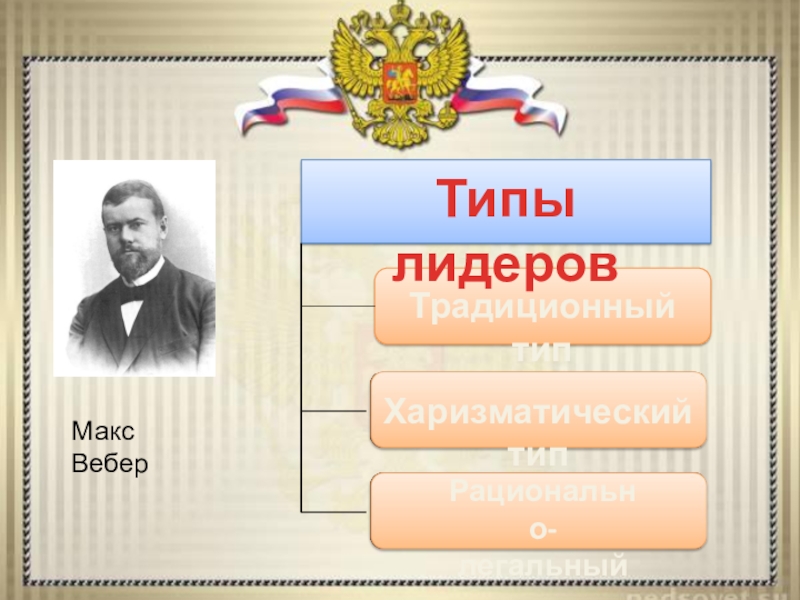 Традиционный типХаризматический типРационально-легальныйТипы лидеровМакс Вебер
