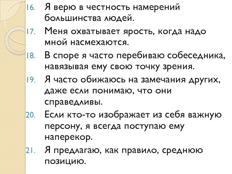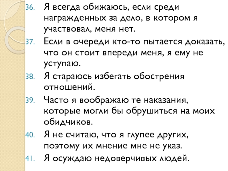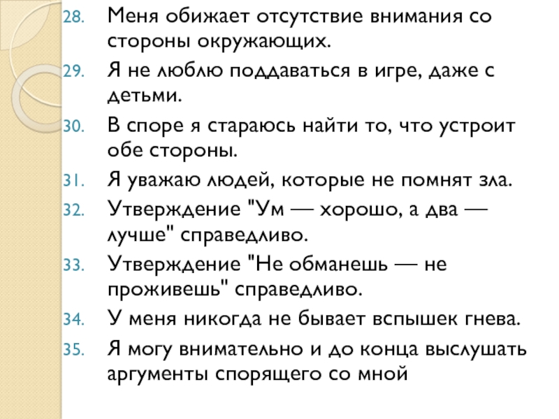 Слайд 9Меня обижает отсутствие внимания со стороны окружающих.