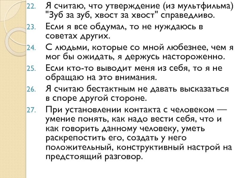 Слайд 8Я считаю, что утверждение (из мультфильма) "Зуб за зуб, хвост