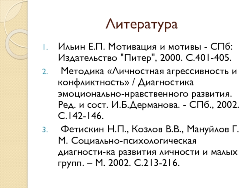 Ильин Е.П. Мотивация и мотивы - СПб: Издательство "Питер", 2000.