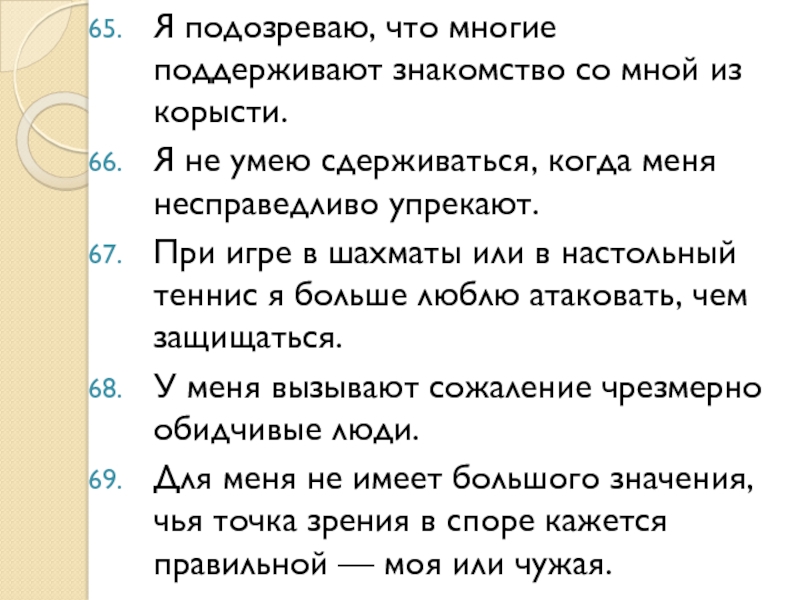 Слайд 15Я подозреваю, что многие поддерживают знакомство со мной из корысти.