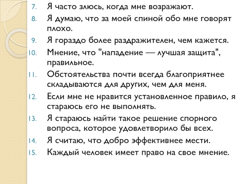 Слайд 11Я всегда спокойно реагирую на критику, даже если она кажется