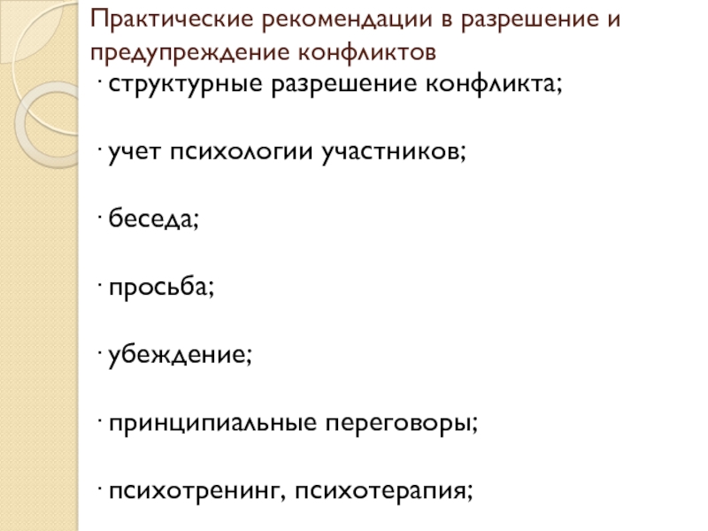 Слайд 21Практические рекомендации в разрешение и предупреждение конфликтов