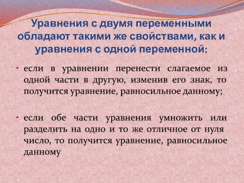 Решением уравнения с двумя переменными называется пара значений переменных, обращающая это уравнение в верное равенство.