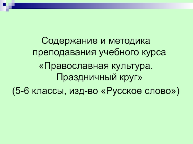 «погружение» в отдельные сюжеты православной христианской традиции (праздники, святые) как средство комплексного и последовательного освоения ценностно-мировоззренческого, религиозного, нравственного, историко-культурного содержания традиции;