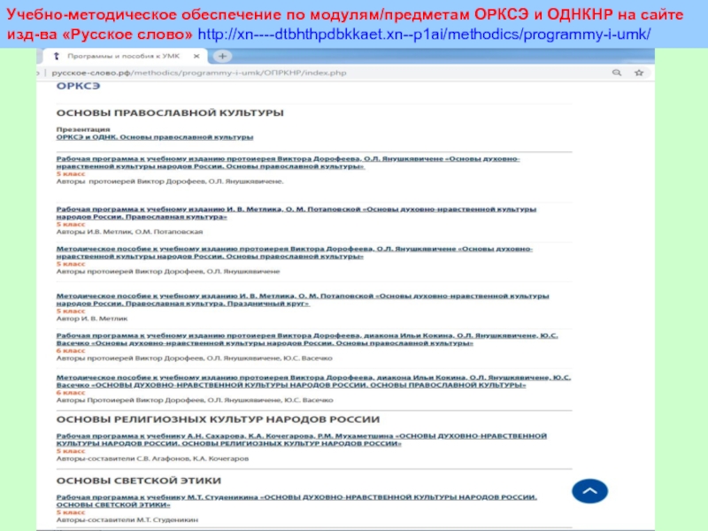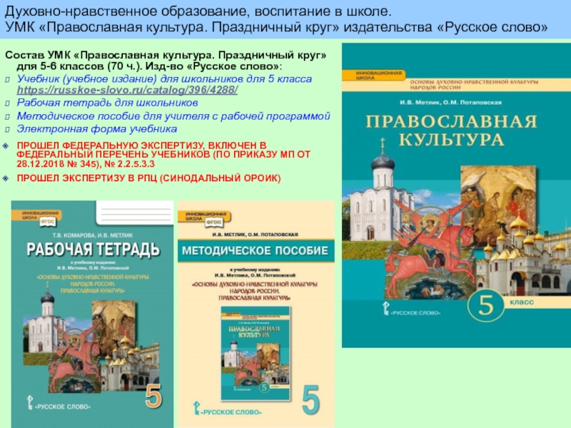 УМК «Православная культура. Праздничный круг» издательства «Русское слово»