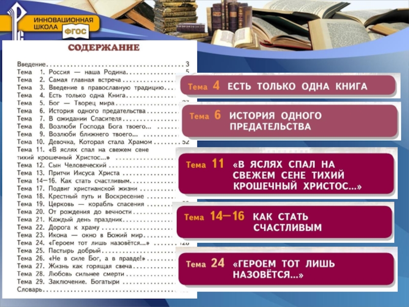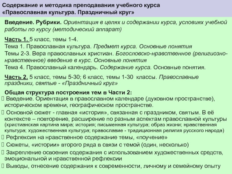 сочетание в каждой теме исторического, культурологического, мировоззренческого богословского, нравственного, современного социокультурного содержания;