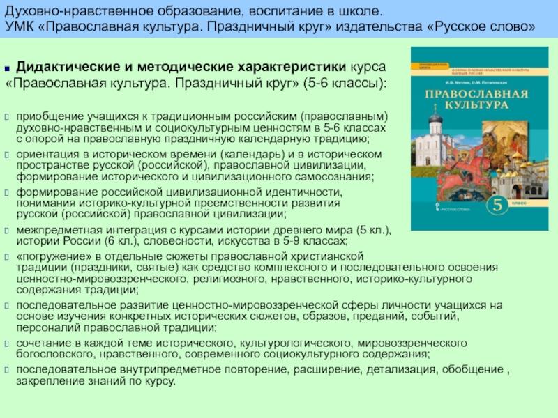 духовно-нравственным и социокультурным ценностям в 5-6 классах с опорой на православную праздничную календарную традицию;