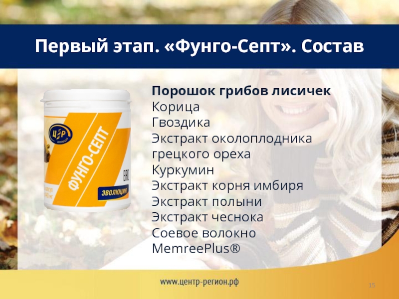 Слайд 15Первый этап. «Фунго-Септ». Состав