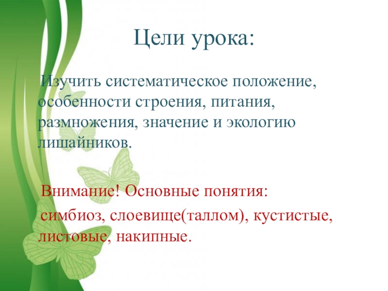 особенности строения, питания, размножения, значение и экологию лишайников.