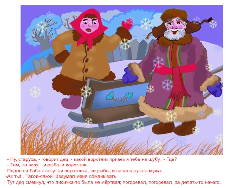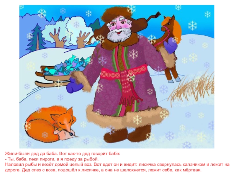 Слайд 3- Вот будет подарок жене, - сказал дед, взял лисичку