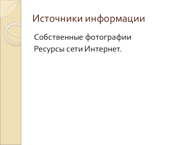 Источники информацииСобственные фотографииРесурсы сети Интернет.
