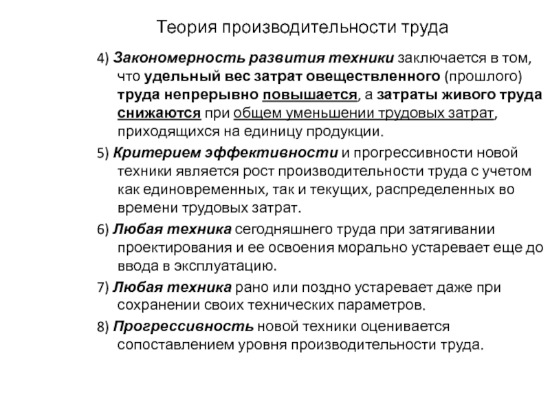 Вывод – производительность труда при данном уровне техники имеет свои пределы; чтобы выйти за них, необходимо непрерывно совершенствовать технологию и технику.